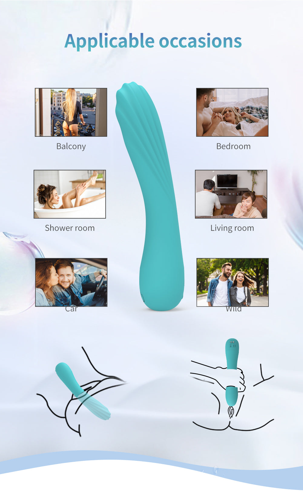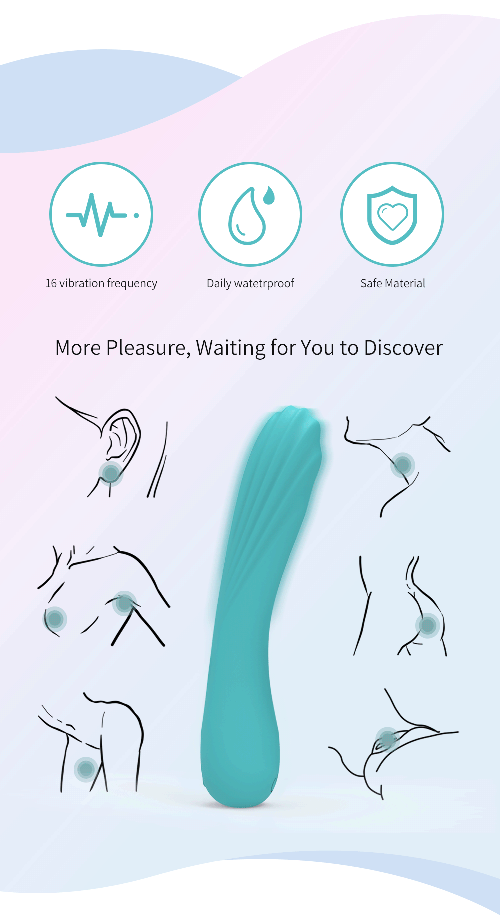 Crafted of body-safe medical grade silicone materials, this vibrator features an innovative design of soft pastel colours and smooth shapes to glide over your intimate and erogenous areas.